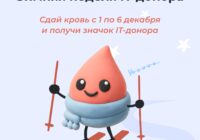 С 1 по 6 декабря пройдёт XI Всероссийская социальная акция «Неделя IT-донора». Цель – создание и развитие сообщества доноров среди специалистов IT- сферы. Как принять участие: – до 6 декабря включительно зарегистрироваться через бот – подготовиться к донации согласно правилам– с 1 по 6 декабря прийти на станцию переливания крови в своём городе или посёлке.… Читать далее »